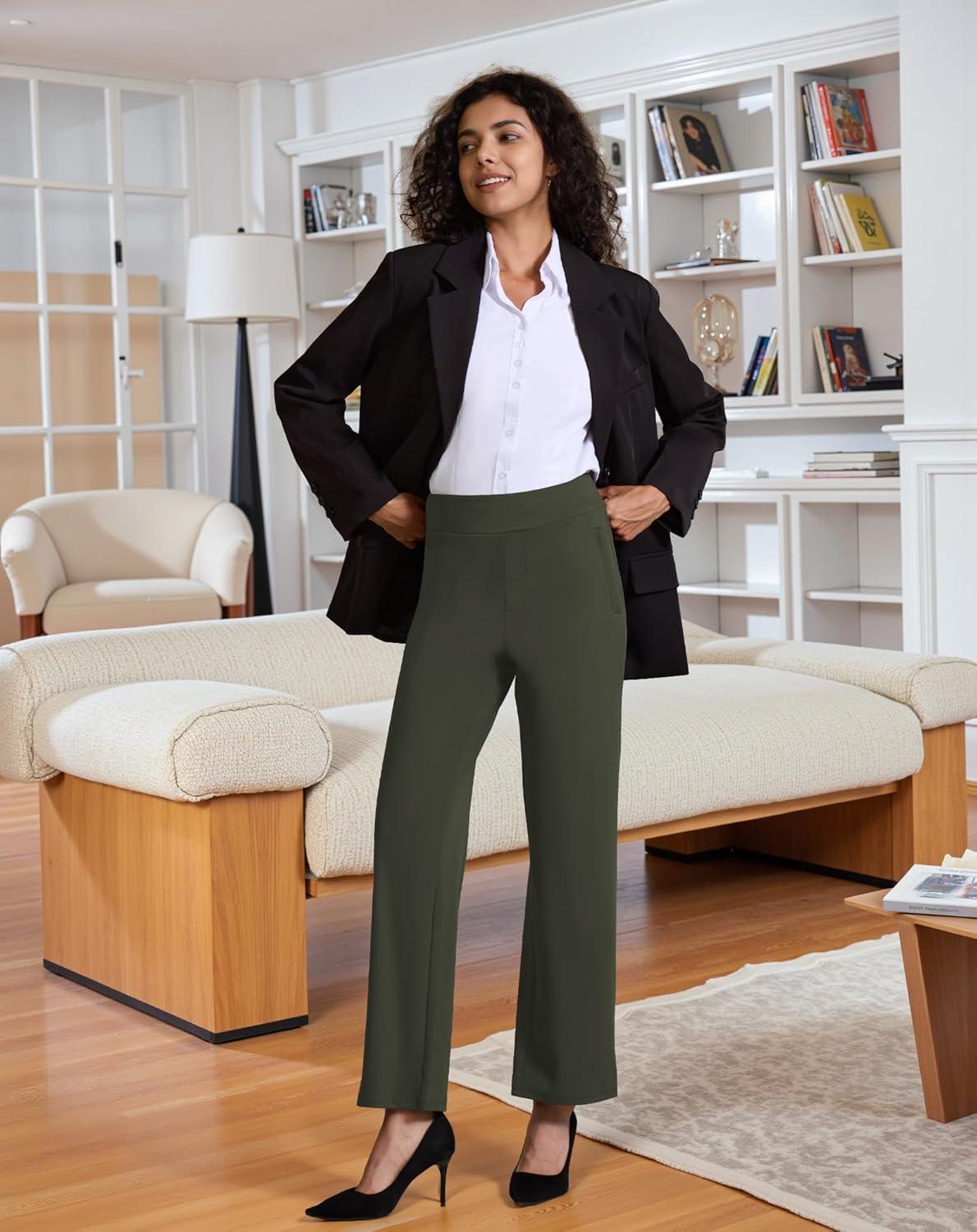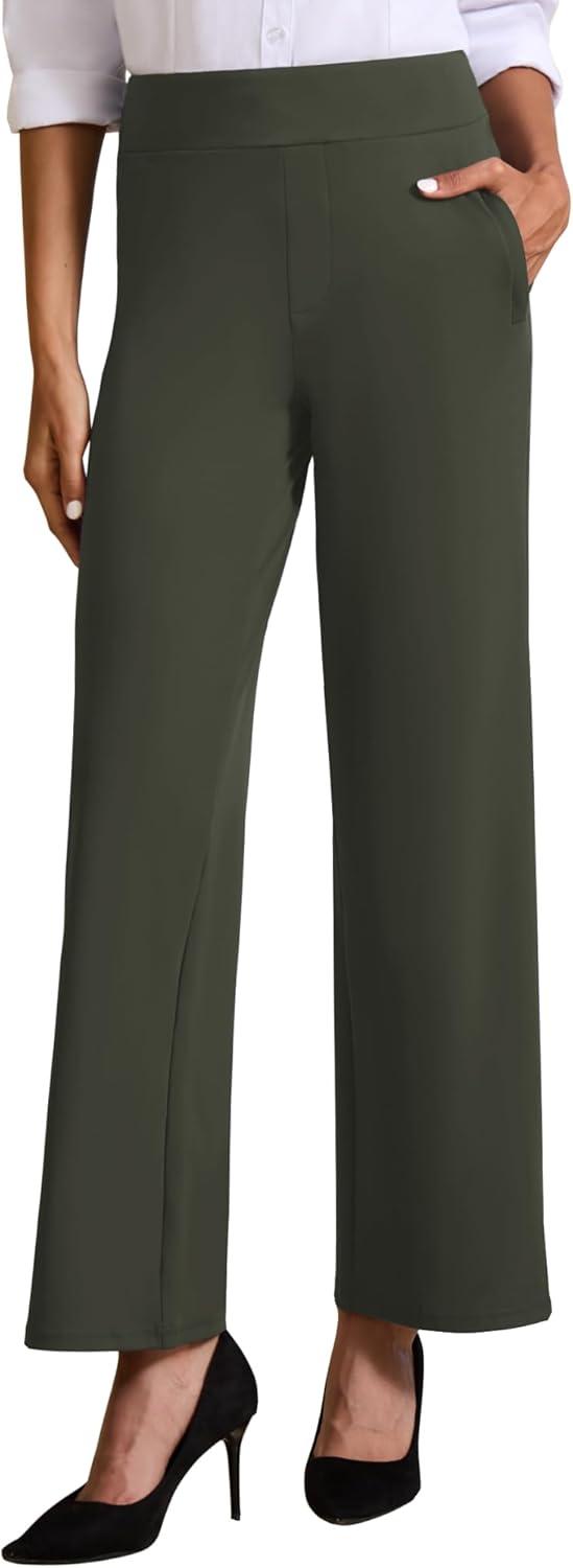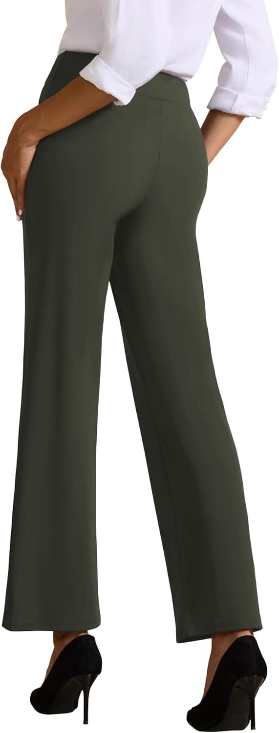 Womens High Waisted Work Suit Wide Leg Pants Side Zipper Pocket Casual Business Dress Pants(Army Green)