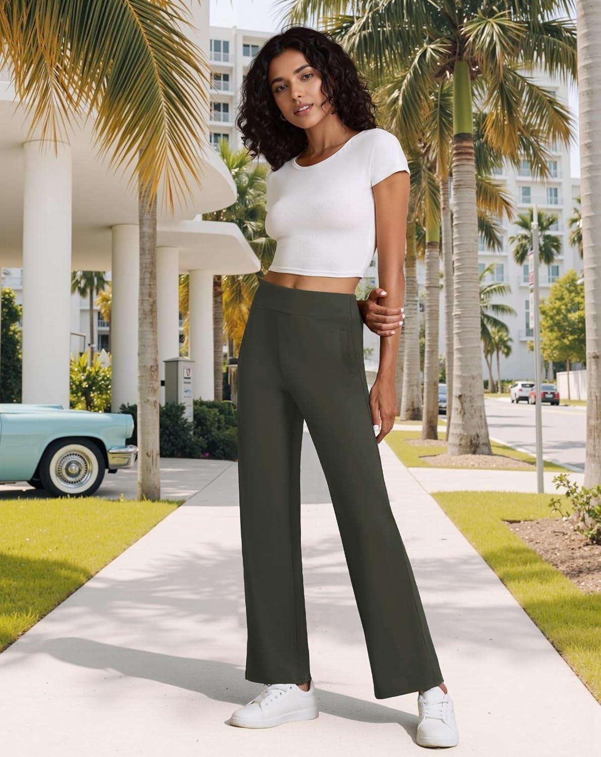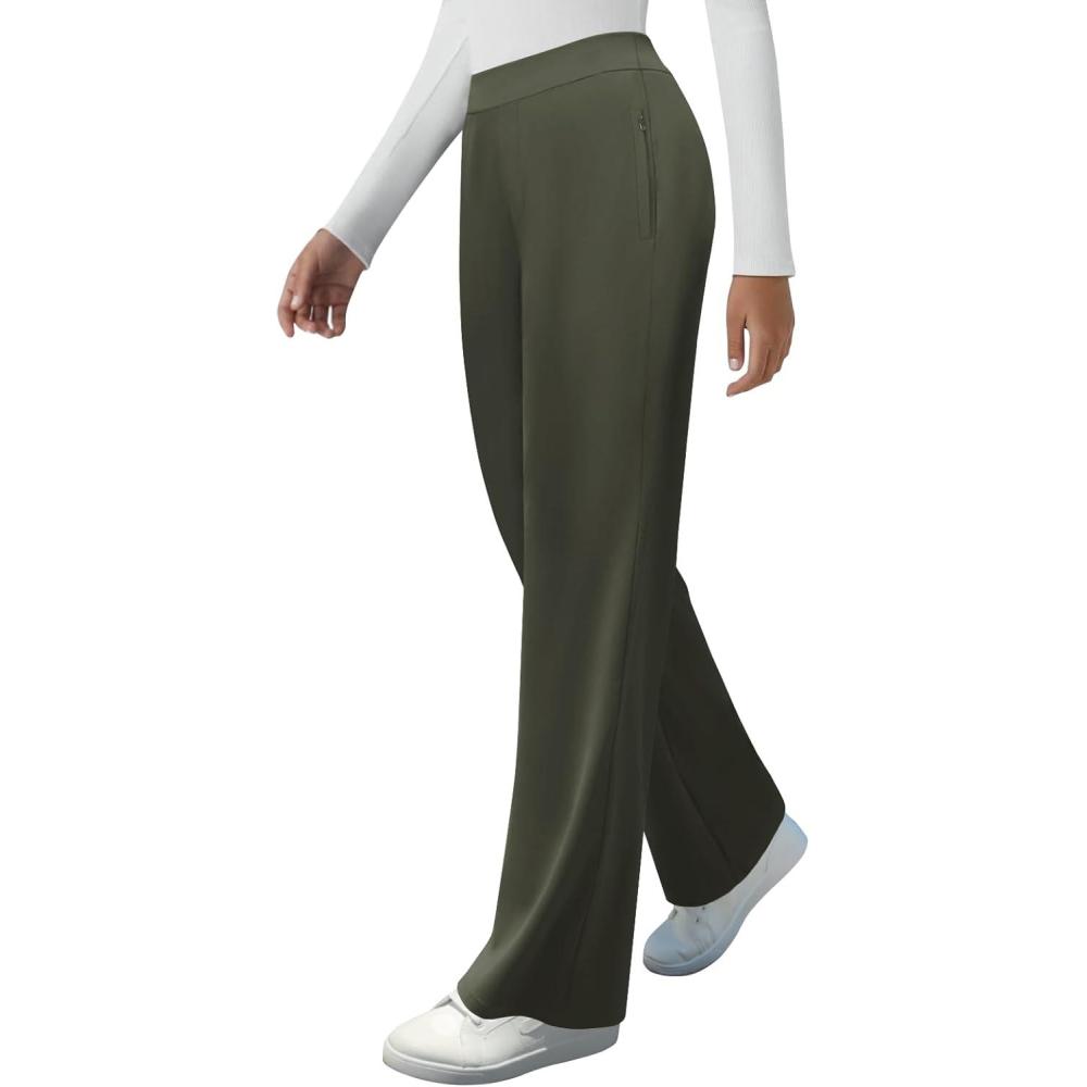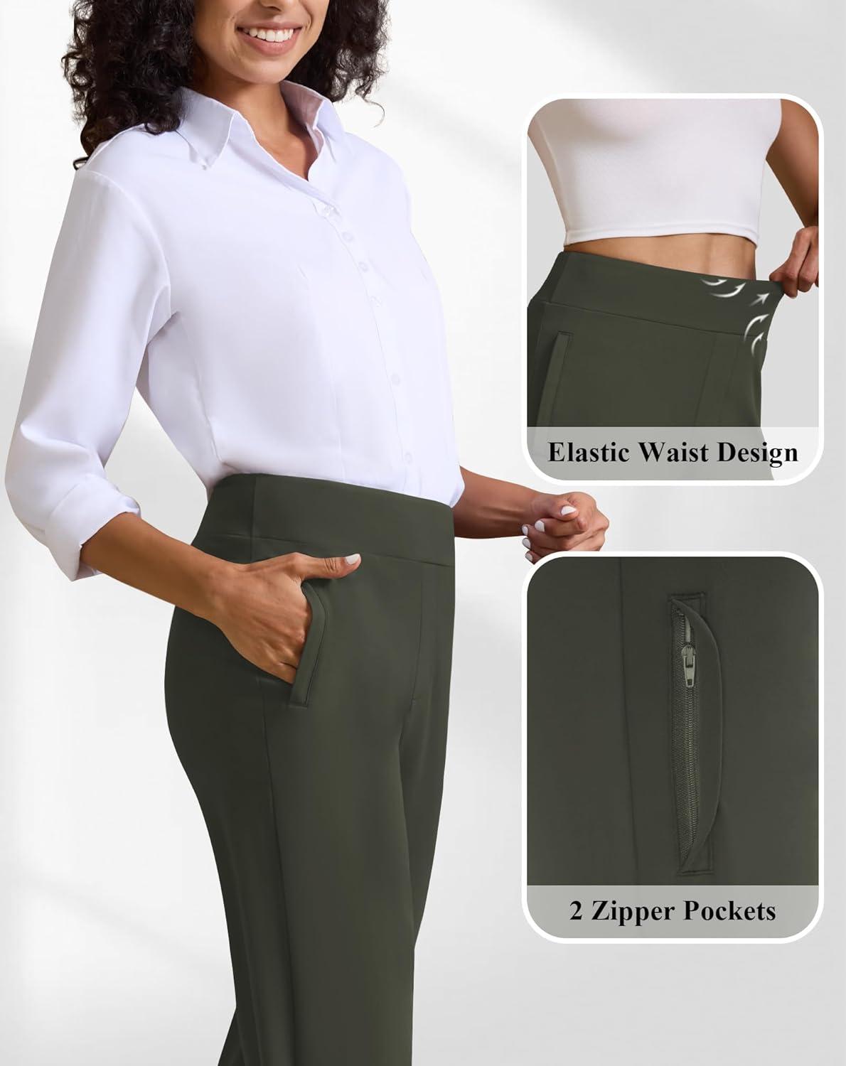 Womens High Waisted Work Suit Wide Leg Pants Side Zipper Pocket Casual Business Dress Pants(Army Green)
